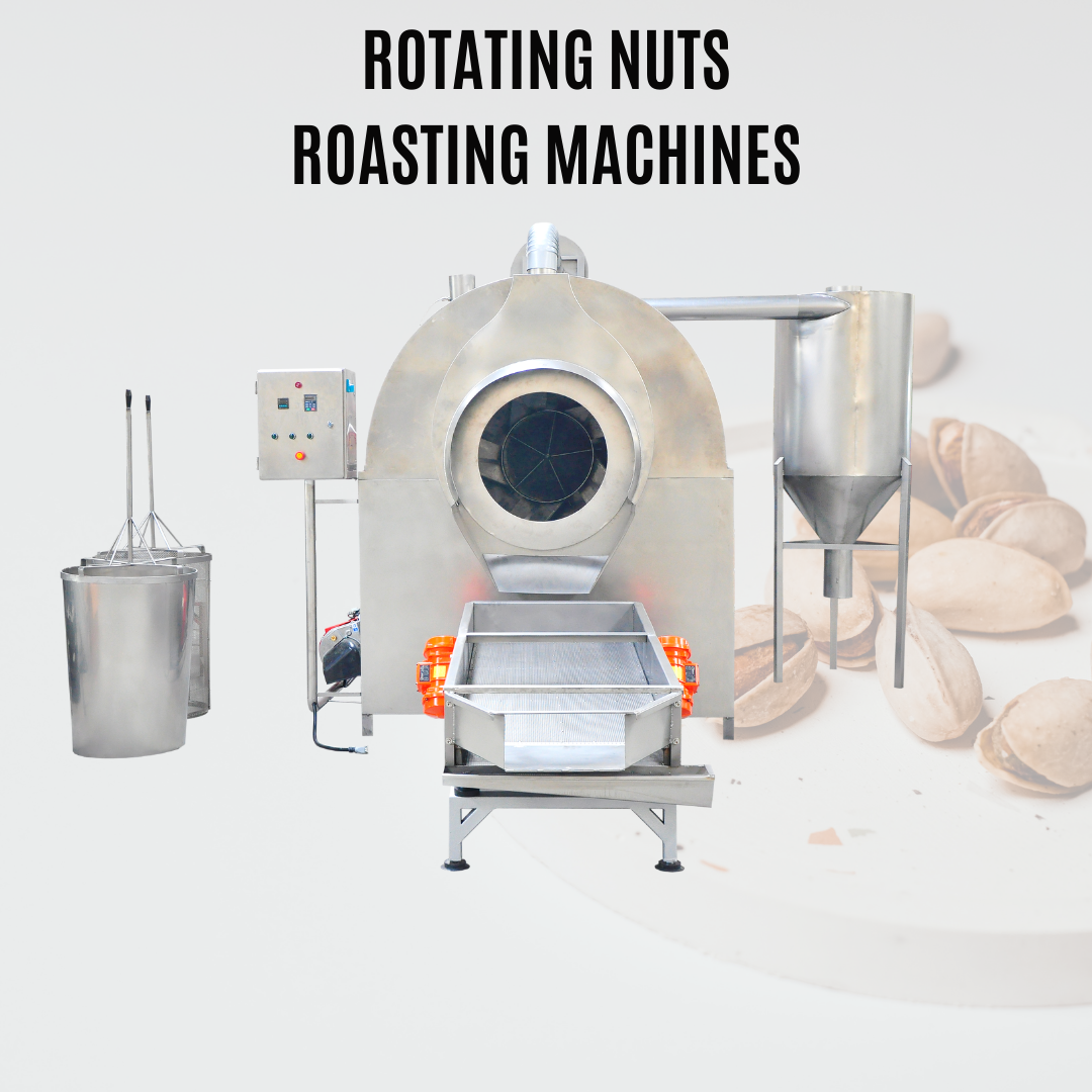 Nuts roasters are the most important process of nuts production when it comes to serve your clients fresh and cooked nuts. There are so many different nuts that can be roasted in nuts roasting machines such as almond, peanut, hazelnut, pistachio, chickpea, sunflower seed, pumpkin seed, watermelon seed, macadamia nuts, cashew, sesame seed and many more. Nuts roasting machines can be purchased depending on the usability of roasting process. Becuase depending on type of the nuts or the seeds,  the roasting process has differences.
